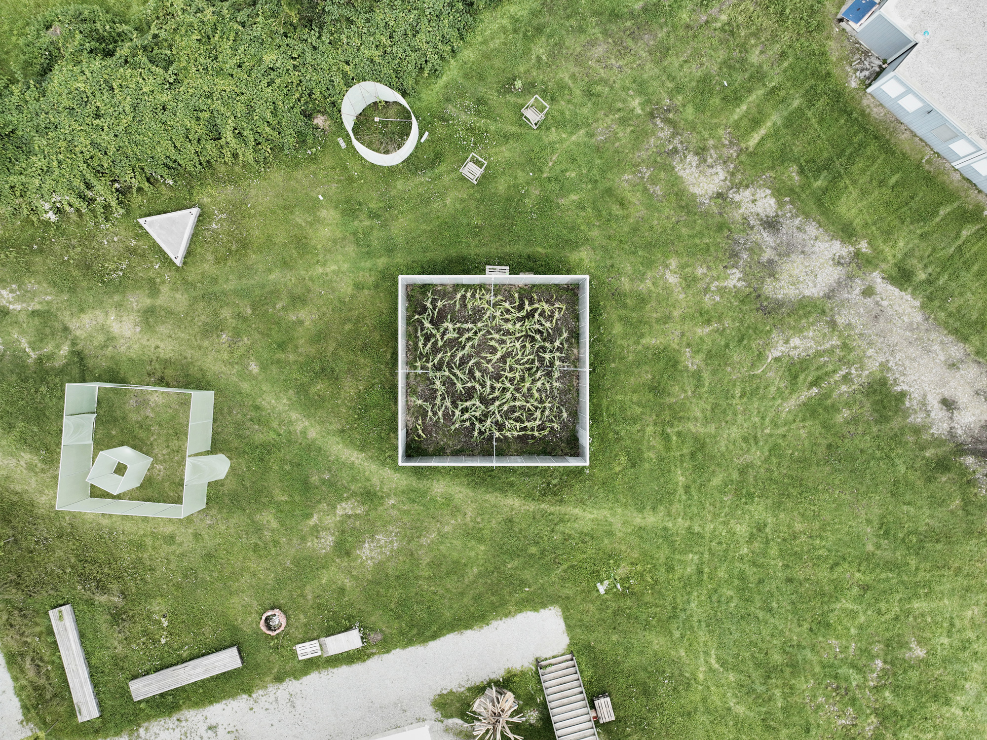 Das öffentlich zugängliche Gelände des Club Hybrid an der Herrgottwiesgasse 161 bot seit 2021 Freiraum sowie Platz für Aktivität und Durchwegung. Diese Eigenschaften generierten Ort, Potential und Ausgangspunkt für das Projekt Maispace. Auf einer quadratischen Grundfläche von 9 x 9 m wurde durch industrielle Schalungswände ein Stück Stadt ausgeschnitten und für 3 Monate temporär konserviert. Es entstand ein Gegenraum, dessen verborgene und unbetretbare Leere polarisierte. Das aus fabriksneuen, modularen Bau-Elementen konstruierte Objekt verweigerte über die Anonymität seiner gerasterten Oberfläche jegliche Konnotation und Zuordnung. Es waren Spekulation und Irritation welche erste Prozesse der Wahrnehmung und Einordnung in Gang setzten. Über die Dauer der Installation wuchs im Inneren unbemerkt ein Maisfeld heran, welches nach dem Rückbau seiner schützenden Wände als inszenierte Agrarfläche in den Dialog mit dem Stadtraum trat. Der Zeitraum der Installation sowie die besetzende Geste warfen zentrale Fragen über Ressourcenknappheit, voranschreitende Versiegelung und stadträumliche Potentiale auf. Zusätzlich bot die Intervention einen konstruktiven Rahmen für eine Auseinandersetzung über urbane Landwirtschaft, Agrarpolitik und Ökologie. Die produktive Stadt wurde mit einer kollektiven Ernte sowie einem zugehörigen Event thematisiert. Alle Elemente wurden rückgebaut und konnten wiederverwendet werden. Ein Projekt auf dem Boden der Tatsachen.